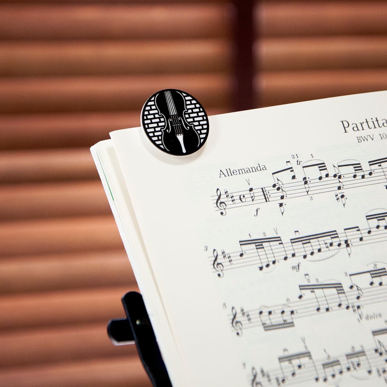 MON-提琴-デザインのクリップです。白い紙面に映えるブラック仕様で、大き過ぎず、小さ過ぎず、程良いサイズ感でご使用いただけます。